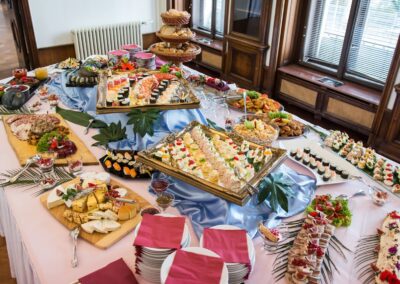 Zajišťujeme catering – občerstvení a doprovodné programy na nejrůznějších soukromých a firemních akcích. Připravíme Vám raut na přání, od klasické české kuchyně, až po nejrůznější exotické a mořské pochutiny.